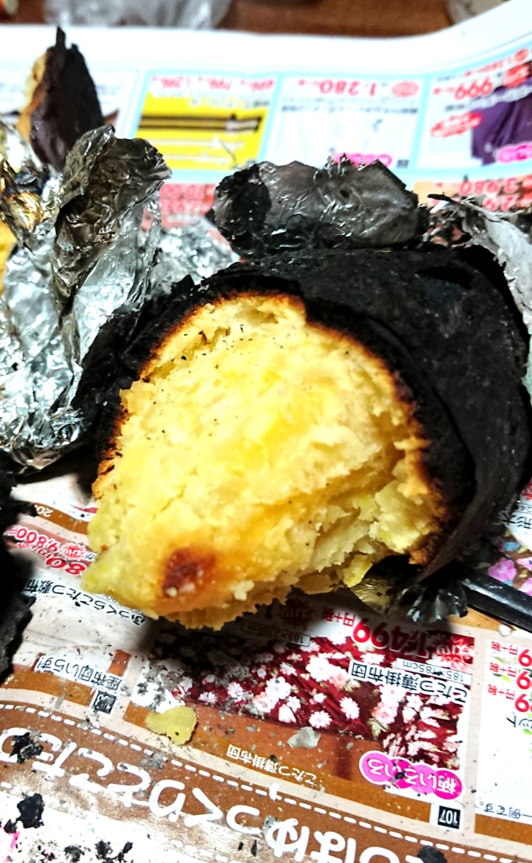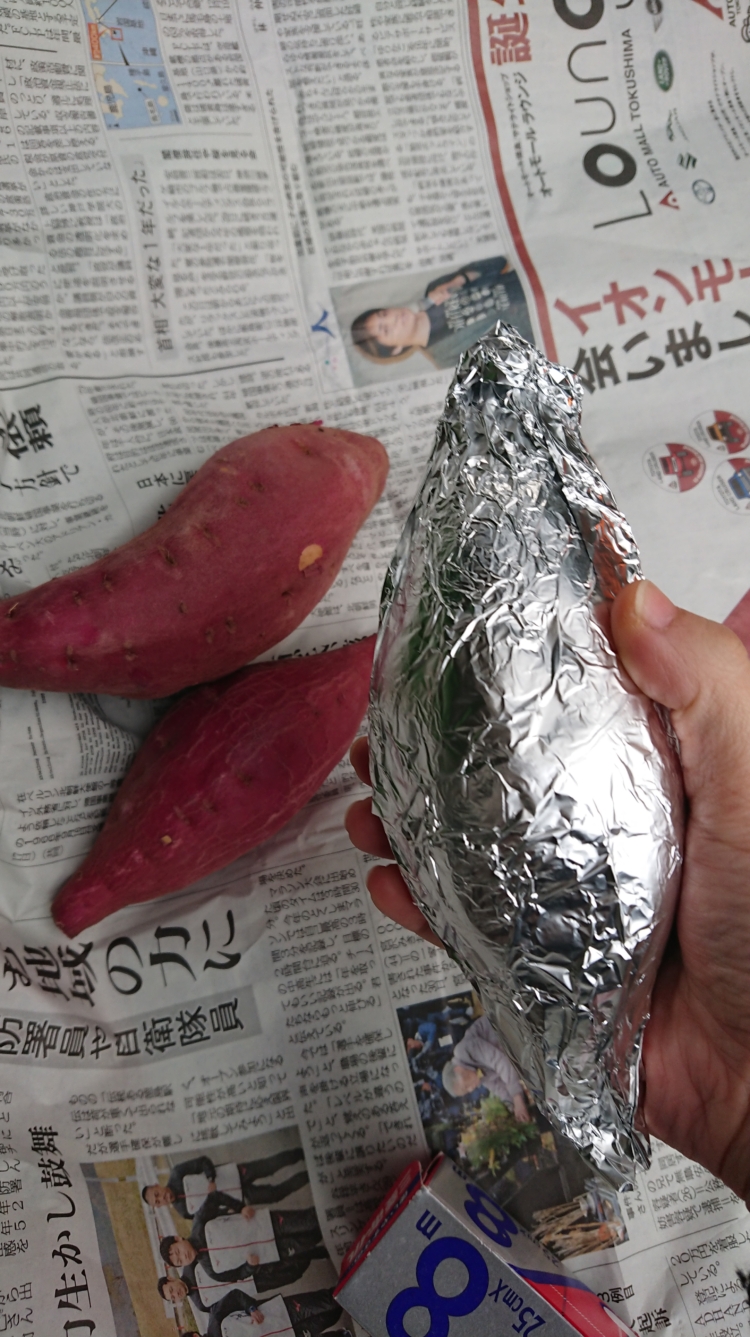 ついでに芋をアルミで巻いて中に入れておきました