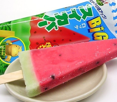 頻繁にみかけるようになるスイカバー…。