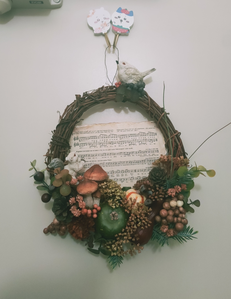部屋の入り口にはリースを飾って料理中とか出掛ける際に目に入るのでちょっと楽しい空間にしてみました✨