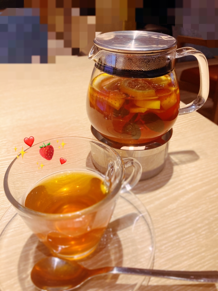 喫茶店で、温かいフルーツティーを注文しました🫖