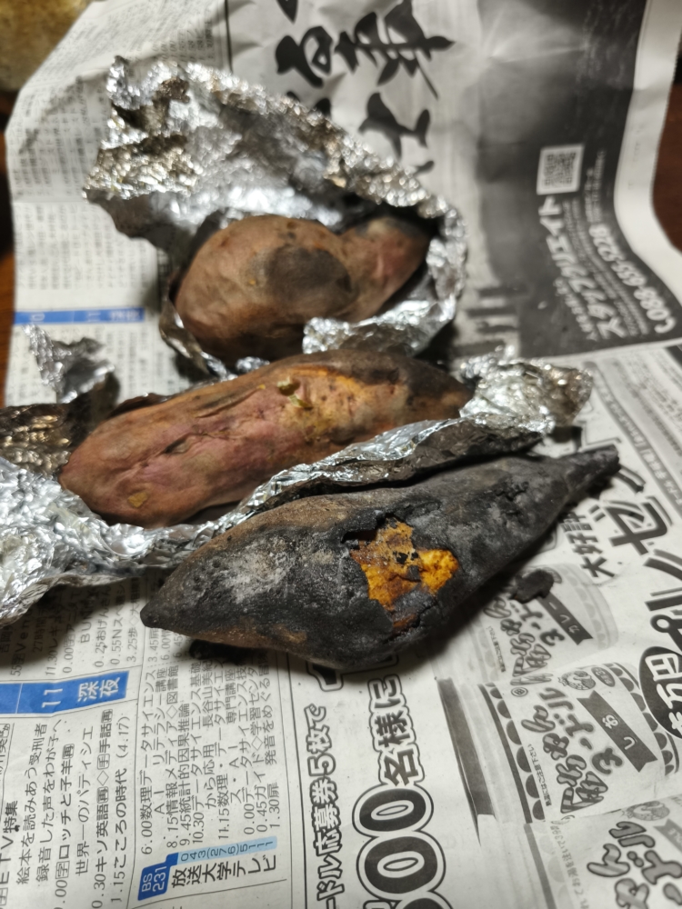 焼き芋は以前体積の3割程炭にしちゃったのですが今回はそこそこ良い感じに焼けました